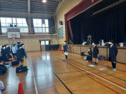児童代表のあいさつをして、いよいよ出発です!