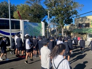 「ホテルを出発して三段壁に到着。もうすぐ集合写真を撮ります。」