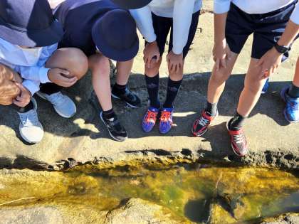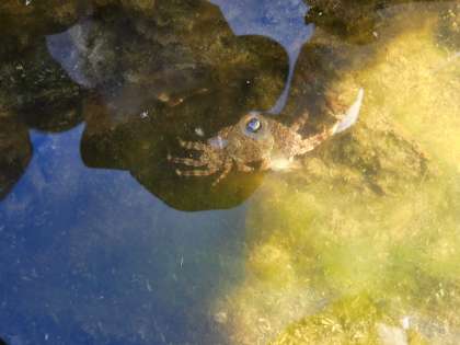 岩場でカニを見つけました!