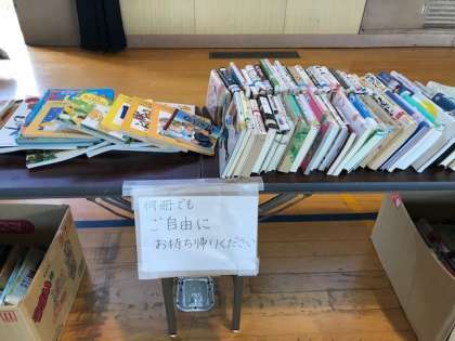 PTA図書の本、気に入ったのがあれば自由に持って帰ってもいいそうです。