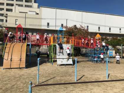 昨日は雨で遊べませんでしたが、今日は元気に遊んでいます。