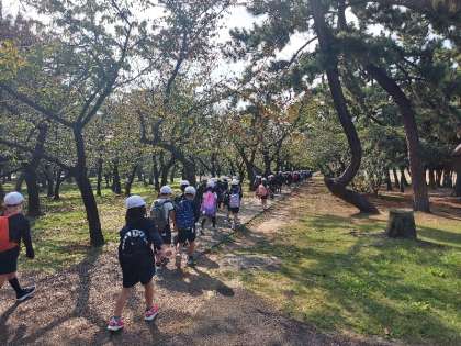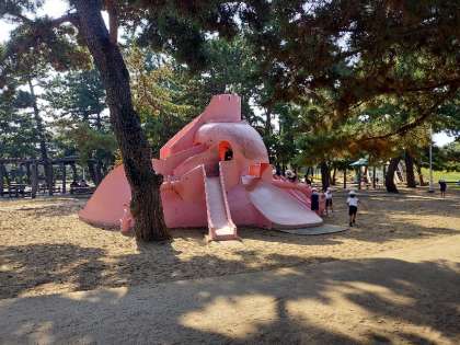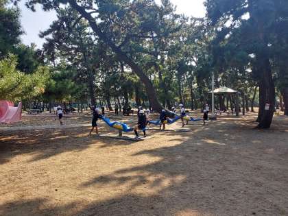 雑木林の小道を抜けて、お弁当前の遊具遊びです。