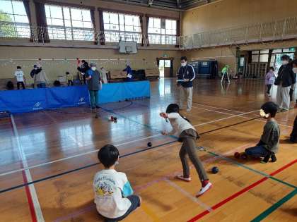白いボール(ジャックボール)に近づけるようにボールを投げます。