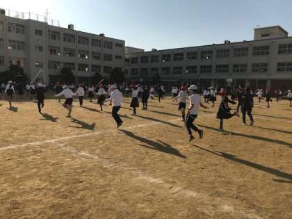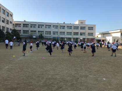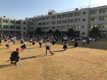 準備運動をして、かけ足とびやあやとびなどを練習しました。