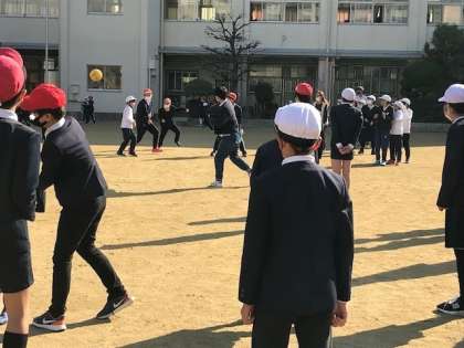 6年生がドッジボールをしています。
