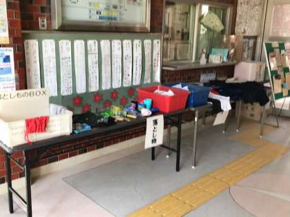 個人懇談会に合わせて玄関に落とし物を並べています。