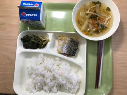 さばのみぞれかけ、すまし汁、こまつなの煮びたしです。