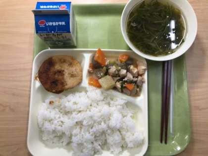 鶏肉の土手焼き風、はりはり汁、れんこんのフライ大阪ソース味です。
