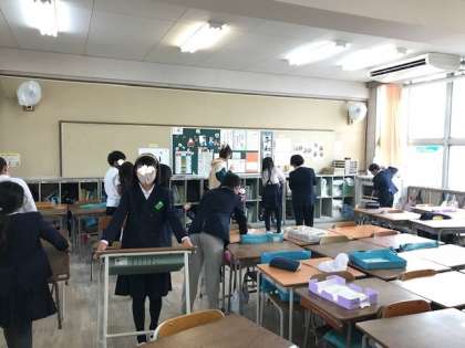 どのクラスも協力して教室をきれいにしていました。