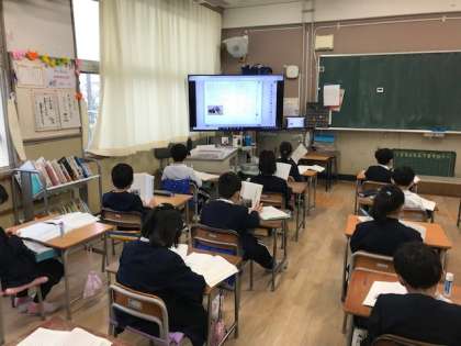 5年生と1年生の国語と4年生の音楽の授業です。