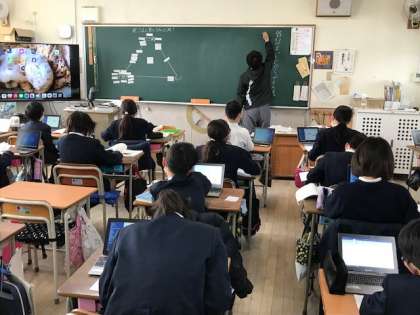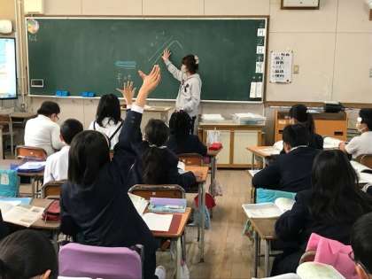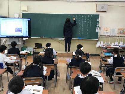 5年生と1年生の国語と4年生の社会科の学習のようすです。