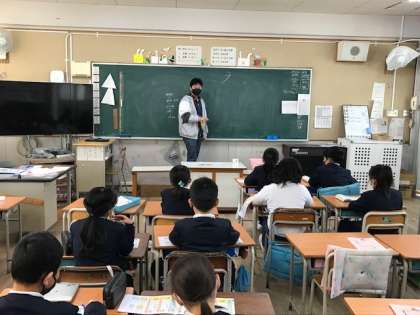 5年生の外国語と4年生の体育と3年生の国語の学習のようすです。