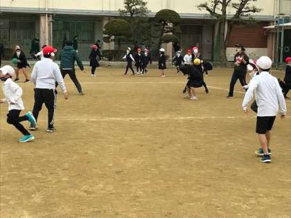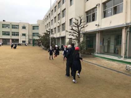 雨が降ってきそうな天気になってきましたが、たくさんの子どもたちが運動場で遊んでいます。