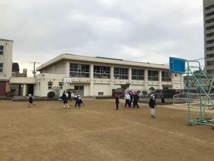今日も曇っていて少し寒いですが、たくさんの子どもたちが運動場で遊んでいます。