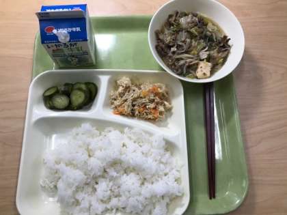 すき焼き煮、もやしとささみのいためもの、きゅうりのゆず風味です。