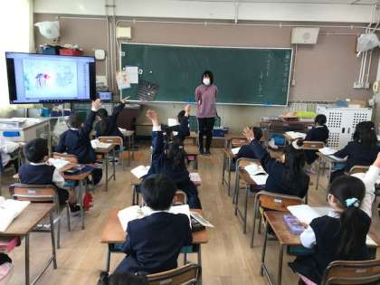 5年生の社会科と1年生の国語と4年生の体育の学習のようすです。