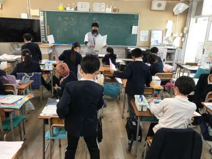 3年生の図工と2年生の生活科と6年生の外国語の学習のようすです。