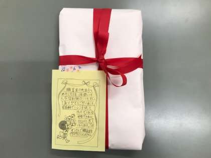 休み時間に6年生の児童から職員室に手作りの雑巾が届きました。