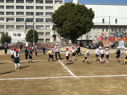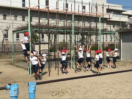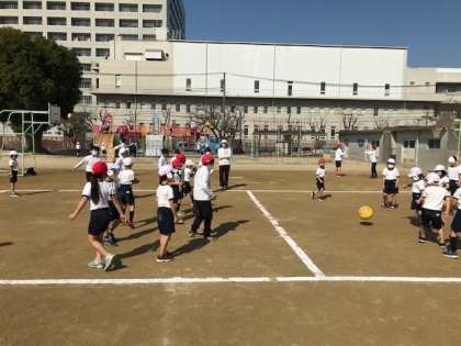 体育の時間が終わっても元気に遊んでいます。