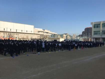 運動場で児童朝会を行いました。