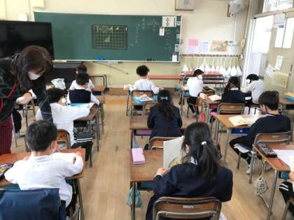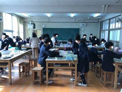 2年生と1年生の国語と6年生の図工の学習のようすです。