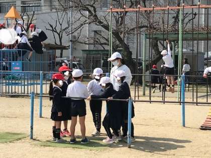 給食を食べた後ですが、おにごっこで走っている子どももいます。
