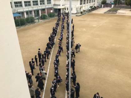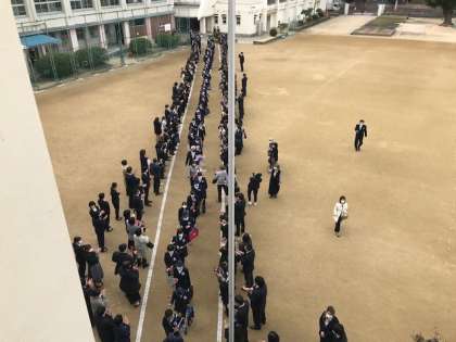 保護者の方と先生で作った花道を通って卒業生が退場します。