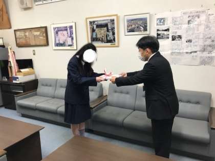修了証が校長先生より5年生の代表に授与されました。