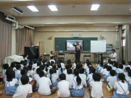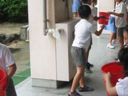 4年生は、9月3日(木)に防災訓練を行いました。まずはじめにDVDを視聴し、地震や津波が来た時の避難方法を学びました。次にけむり体験やバケツリレーの体験をしました。今日の学習を通して、どの児童も防災意識が高まりました。
