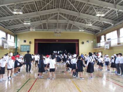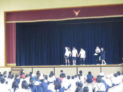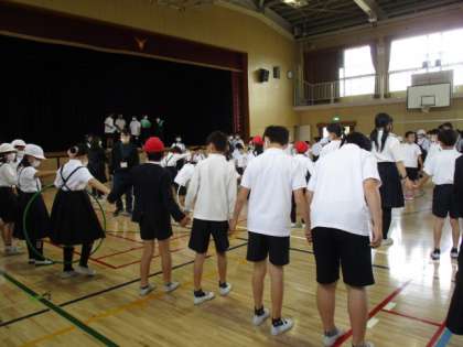 舞台でルール説明やお手本を見せた後に、各班で行いました。