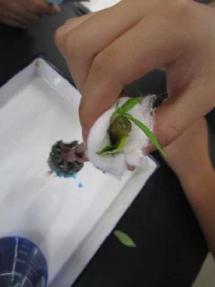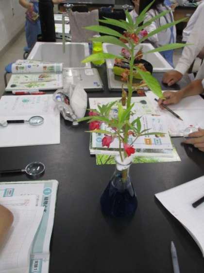 理科の学習で、「水は、植物の体内のどこを通っているのだろうか」ということについて調べています。