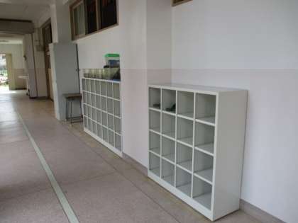 天井のパイプや消火栓、理科室前の下駄箱もきれいになりました。