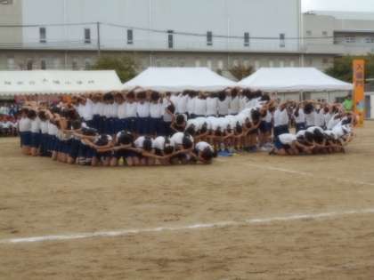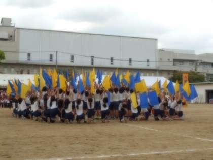 6年生の気持ちを込めたフラッグ!組立体操!とても感動的で涙が出てきましたね。下級生たちの記憶にも残ったと思います。すばらしい!