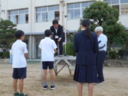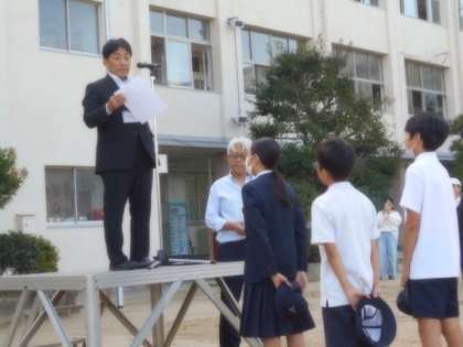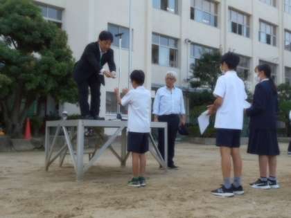 今日の朝会で表彰式がありました。バスケットボールの大会で優秀な成績をおさめ表彰されました。