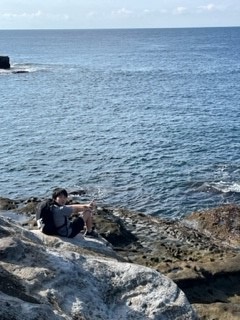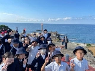 太平洋の青い海を背景に広がる大きな白い岩盤。長い年月をかけて打ち寄せる荒波に浸食され岩だたみのような景観になったそうです。