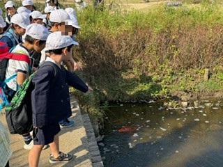 池の中に何か見つけたよ