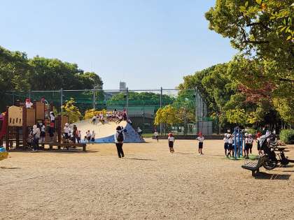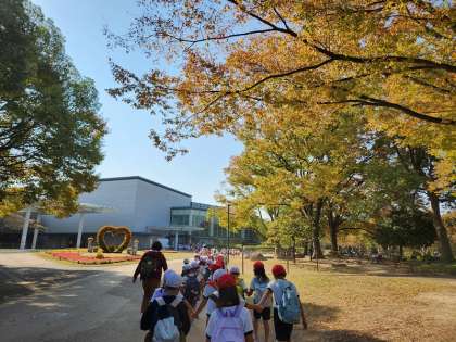 またまた、移動中。次は、遊具がたくさんあるところへ行きます。あ、花もきれいだね。