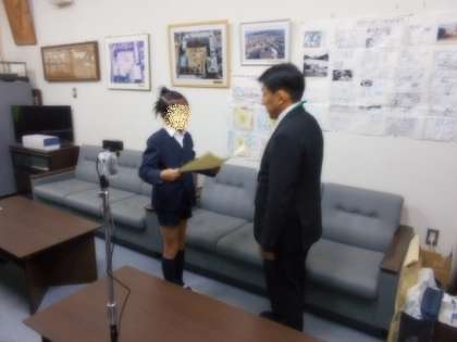 児童朝会で夏休みの絵画の表彰と図書委員会より連絡がありました。