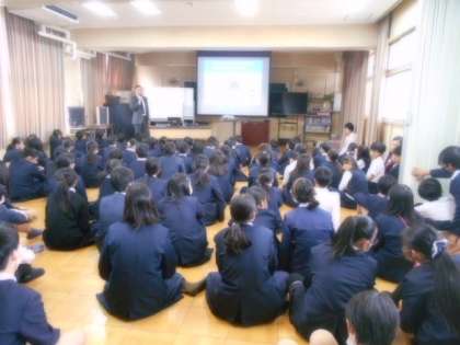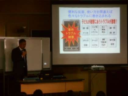 住吉警察署少年係の方から講話をしてもらいました。スマホを使う上で気を付けなければならないことなど学びました。