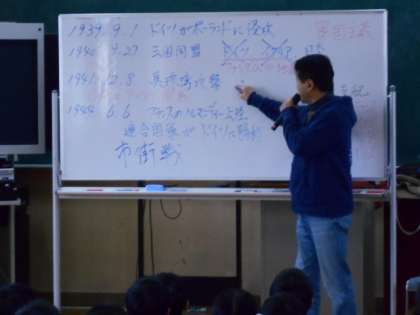 講師の方に第二次世界大戦時の状況を主に日本側からの視点で話していただきました。子どもたちは、客観的に戦争のことを知ることができました。