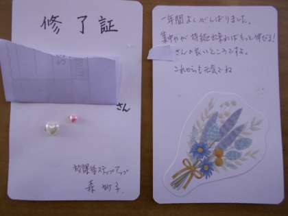 大領小学校では、指導員(本校教員ではありません)の指導のもと、3年と4年の申し込まれた希望者が放課後50分間自主学習しています。3年Aクラスの最終日なので終了証が手渡されました。