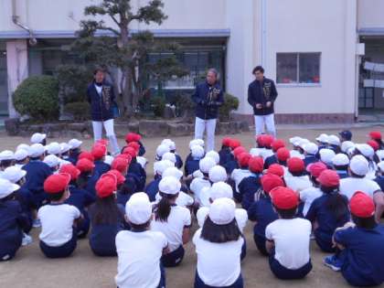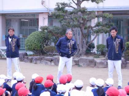 オリックス・バファローズのコーチ3人が野球を教えてくれました。コーチの方は元プロ野球選手!何かオーラを感じる‼子どもたちも真剣なまなざしで話を聞き、一生懸命取り組んでいました。