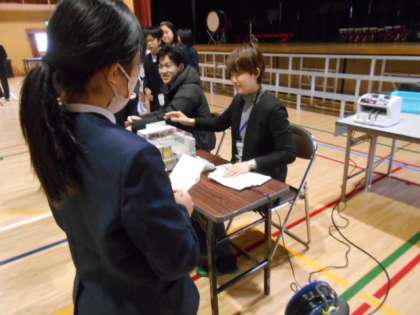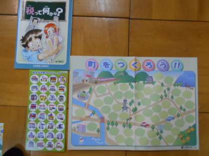 3時間目に多目的室で税について4時間目に講堂で選挙について学習しました。税については自分で住みやすい街をシール貼りしながらつくりました。選挙では、実際に模擬選挙の体験をしました。