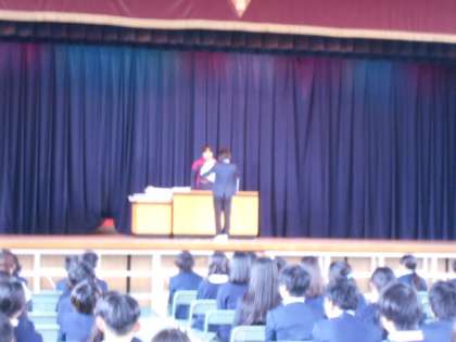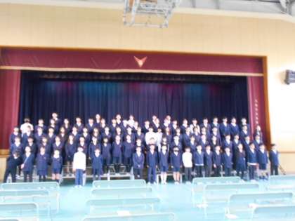 入場から退場まで通しで練習しました。休憩なしの1時間30分ぐらい、感極まって泣いてしまう子もあって、・・・本番が楽しみになりますね。卒業証書授与と旅立ちのことばの場面です。