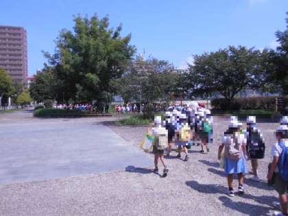 見学グループと講話を聞くグループに分かれて活動しました。終了後、住吉公園の遊具があるところで10分くらい過ごしてから学校に戻りました。