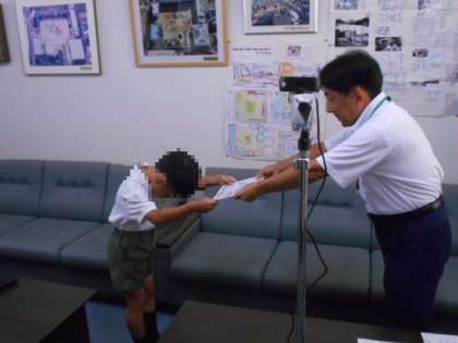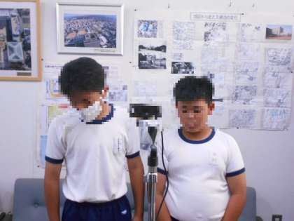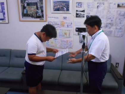 給食委員会より残食調べで優秀な学級への表彰がありました。6年と2年の優秀学級の表彰状を渡しいるところです。3・4・5年の優秀学級にも表彰しています。