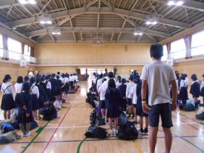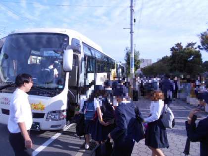 いよいよ出発です。出発式では、見送りの保護者に「行ってきます」の挨拶をしました。バスに乗り込むときは、みんな笑顔でした。ドキドキワクワク