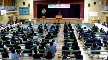 全体会では、近畿小学校家庭科教育研究会の上田会長の挨拶、来賓祝辞は、教育委員会の多田教育長からいただきました。