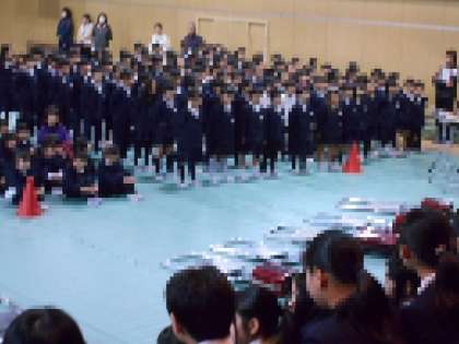 卒業生がアーチをくぐって入場しました。その後1年生から2年生と合唱しました。