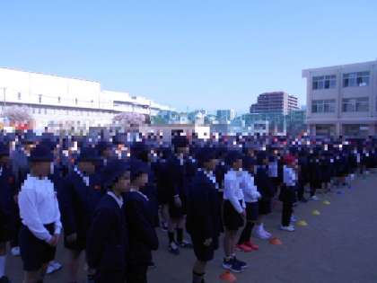 今年度第1回の児童朝会をしました。きれいな列、姿勢もとてもよかったです。1年生もがんばりました。